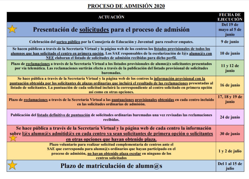 Continuando con el proceso de admisión para el próximo curso, el periodo en el que se deberán entregar las matrículas para confirmar las plazas los alumnos de nueva incorporación será + Ampliar